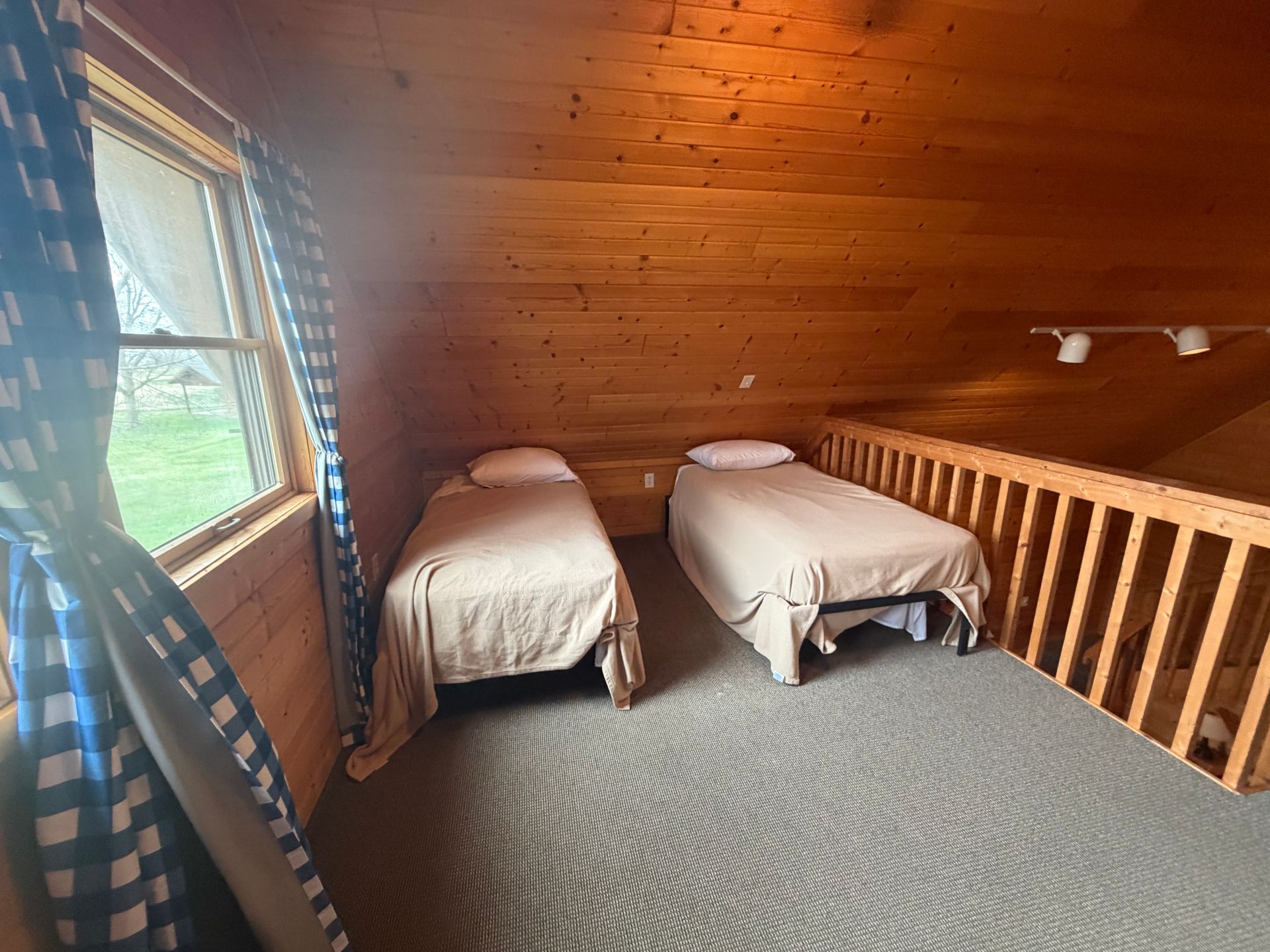 - A loft with 1 queen bed and 2 twin beds (upstairs)